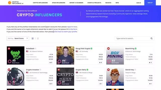 目前拥有区块链媒体CryptoInfluence.io上面有几百个区块链KOL的实时排名,以及区块链的实时黑名单。这个媒体还包含各大正规区块链会议和项目。社区通过BST(token)进行投票和交流, 目前在建设中。同时还在建设中的板块上有最优秀的区块链投资机构排名。