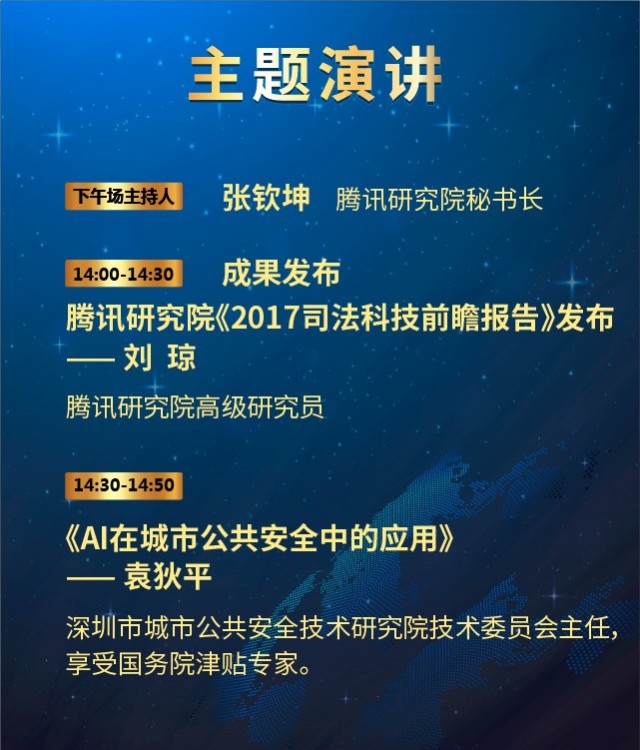 论坛邀请到了政用产学研各界权威专家学者20多位,搭建跨学科、跨领域交流,共话人工智能与法律的未来发展。届时,腾讯研究院将发布《2017司法科技前瞻报告》。
