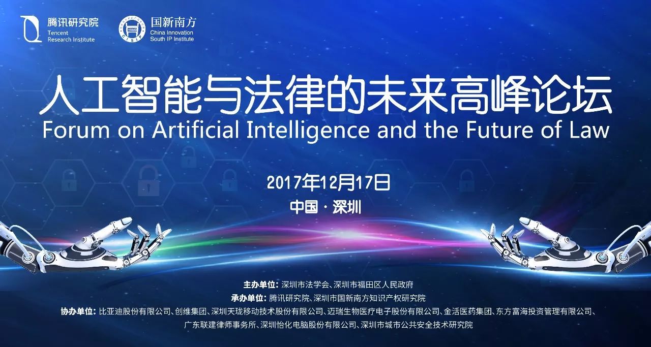 为了更好地发掘人工智能在法律行业的机遇,以及更好地理解人工智能带来的新问题、挑战和影响,腾讯研究院携手深圳市国新南方知识产权研究院,共同承办“人工智能与法律的未来高峰论坛”。