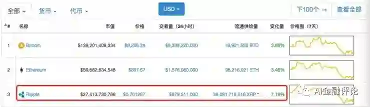 但在数字货币全线下跌的大势中,上述合作并未能阻挡XRP的颓势。按照Coinmarketcap平台显示的数据,截止3月16日中午12:00,当前XRP价格为0.7美元,总市值274.14亿美元。相较此前XRP创造的高价,XRP市值跌幅明显,急需更大的利好消息提振。