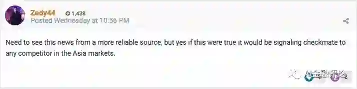 需要从更可靠的消息来源上看到这个消息。如果这是真的,其对于任何一位亚洲市场的竞争对手而言,都是致命的信号。