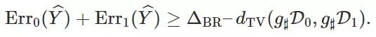 如果基于可以确定 A=Y 或 A=1-Y,那么 将取到其最大值 1。在这种情况下,任何公平分类器都必然会在至少一个群体上产生至少为 0.5 的误差。
