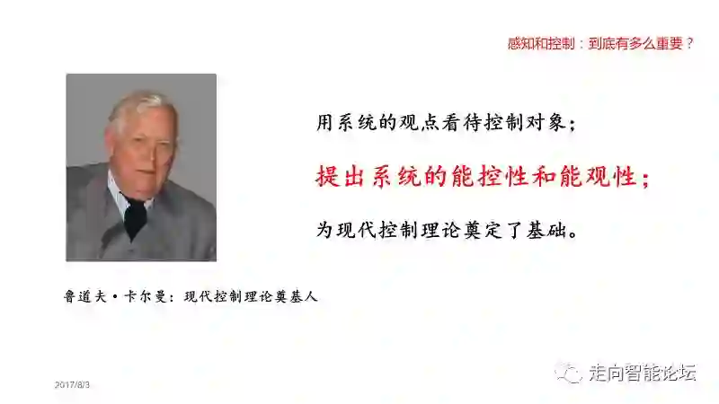 现代控制理论把控制对象看成一个系统。系统的输入影响系统的内部状态、状态决定系统输出。系统的状态能不能被知到、被控制到任意点呢?从理论上体系上说,这是个关键问题。现代控制理论奠基人鲁道夫·卡尔曼提出了两个概念:(状态的)可观性、可控性。 从某种意义上说,这两个概念的诞生,标志着现代控制理论的产生。