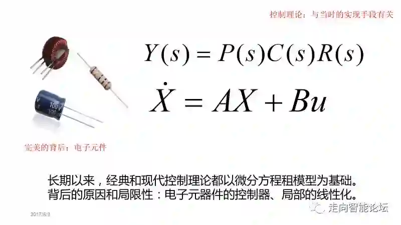 经典和现代控制论非常了不起。但也遇到了很多麻烦、受到了很多的限制。比方说,很多控制算法就是是复杂的逻辑关系,许多控制对象不能用线性常微分方程组来描述。再按照传统的思路走下去、得到每秒的数学解,基本上可以说是举步维艰的、应用特别难。