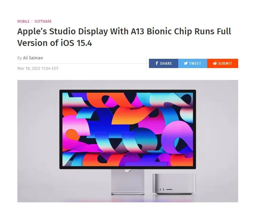 但是苹果这个月发布了 Studio Display 显示器之后,情况就不一样了。苹果丧心病狂地给这台显示器装进了 A13 芯片,还有 2GB 内存、64GB 存储和一个完整的 iOS 15.4 系统——活脱脱一个大号 iPhone 11。