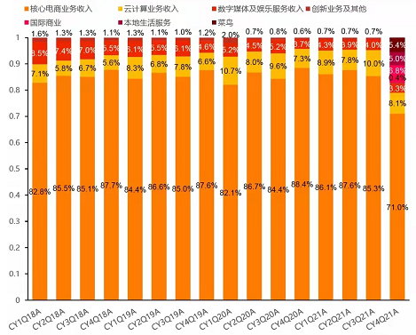 尽管观察期内,阿里在一些新业务方面的表现依然可圈可点,但就实际情况而言,国内电商业务仍然占据了阿里70%以上的营收占比,这意味着:短期内其他业务板块很难挑起阿里的增长重担,国内电商的表现仍然是其最为核心的基本盘。