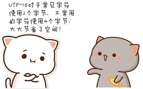 UTF-16 要常见得多,它的码元是 16 位的,也就是说每 16 位去读一下码点,获取码点的前 16 位数字,直到读取完成。