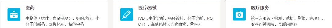 高特佳将医疗健康领域分为了医药、医疗器械和医疗服务三大方向。