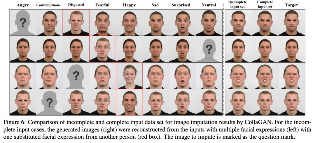 Collaborative GAN 提出了一种新的缺失图像数据插补框架,称为协同生成对抗网络 (CollaGAN)。CollaGAN 是在现在已经成熟的单图像到图像生成的基础上,研究多域图像到图像的翻译任务,以便单个生成器和判别器网络可以使用剩余的干净数据集成功估计丢失的数据。