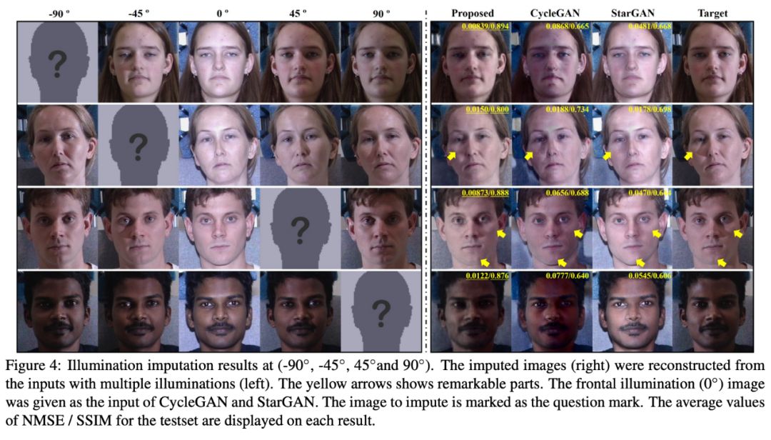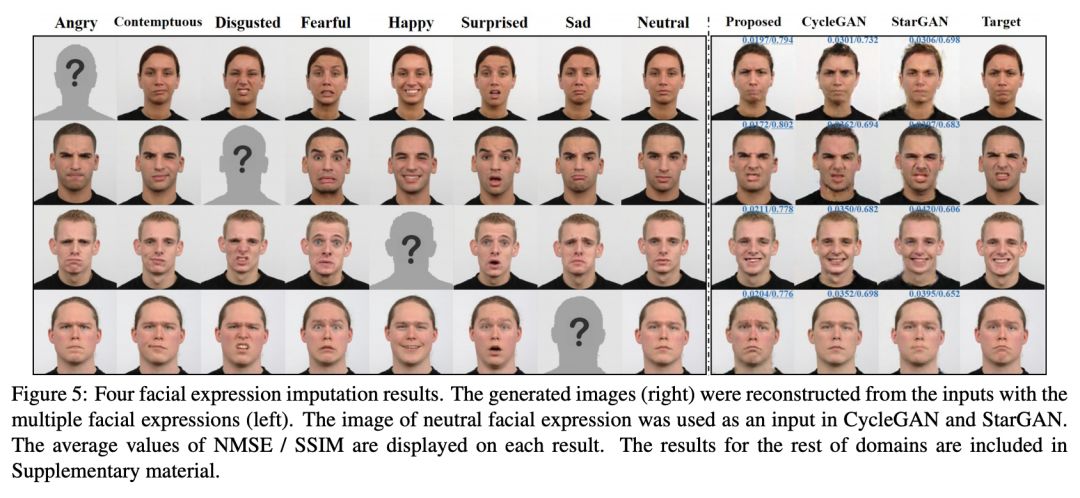 然而,图像插补和图像转换之间存在根本差异。例如,CycleGAN 和 StarGAN 有兴趣将一个图像转移到另一个图像,但不考虑剩余的域数据集。然而,在图像插补问题中,丢失的数据不经常发生,并且目标是通过利用其他清洁数据集来估计丢失的数据。