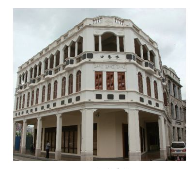 骑楼建筑是具有中西地域建筑风格特色的建筑,是中国传统“檐廊式”建筑与中南亚的印度、新加坡等国家“殖民地外廊式”建筑特点融合的产物。骑楼建筑通常为“前店后铺”或者“下店商铺”的模式,沿街而建,层数一般为 2~3层。骑楼建筑与普通的单体建筑不同之处在于它的连续性,一幢幢不同风格、不同高度的建筑单体连续组合后形成一条完整而丰富的沿街界面。骑楼街的建筑风格变化多样、高度参差不齐,形成了丰富的沿街景观效果(图2、图3)。