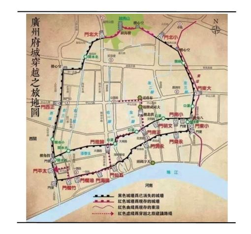 广州城的雏形出现于秦朝,约有2000多年的历史;秦灭亡后,赵佗统一岭南并建立南越国期间是广州城发展史上的一个高峰;唐朝时期,由于海上贸易发展需要,广州城进行了新的城市建设活动,形成了“州城三重”的格局,即郡城、子成、南城;宋朝时期,由于广州海港贸易的繁荣导致古城无法满足人们生活与商业的需要,广州城开始了新城建设,建立了史称“宋代三城”的子城、东城与西城;明朝时期,在“重农抑商”的政策下海上贸易被禁止,使广州的城市发展建设滞缓,其城市建设开始走向形式和功能的多元化,这一时期最显著的城市建设活动就是将“宋代三城”合并为一城,其范围北扩至越秀山;清朝时期,广州城向南新建了“鸡翼城”部分(图 1),此次建设是广州城历史上最后一次大规模的建设,但仍无法满足其商业贸易的发展需求。因此广州城市的发展渐渐突破城墙的限制向城市外部延伸。