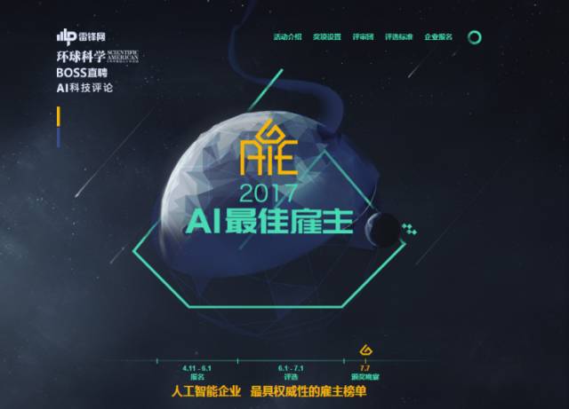在人工智能爆发初期的时代背景下,雷锋网联合旗下人工智能频道AI科技评论,携手 环球科学 和 BOSS 直聘,重磅推出【2017 AI 最佳雇主】榜单。