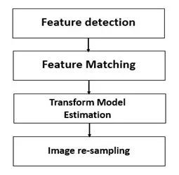 通常,图像配准技术包括四个方面:变换模型、特征空间、相似性测度、搜索空间和搜索策略。依据这四个特性,图像配准的步骤一般可分为以下五个步骤: