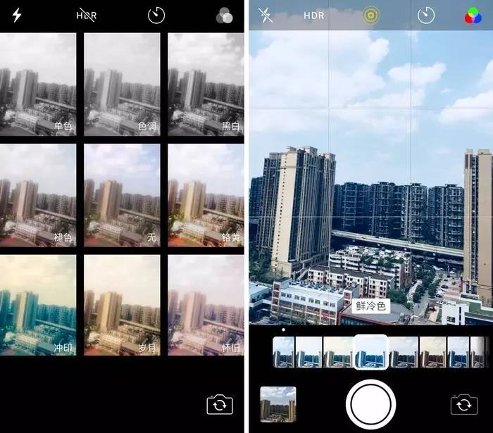 iOS10 及之前的版本中,原生相机就已经支持实时滤镜。但是,这个功能却被我习惯性忽略,因为数量太少、质量一般。而在 iOS 11 中,虽然滤镜数量仅从原来的 8 枚变成 9 枚,但是命名、效果以及界面都有了较大的变化。