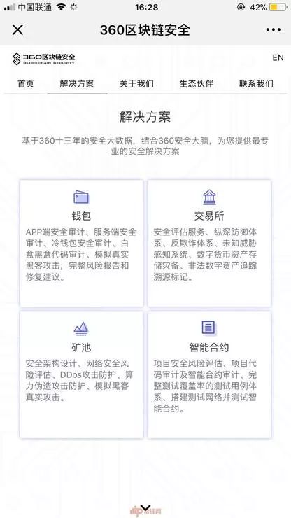 ▲360 区块链安全解决方案官网,注意第一句的“安全大脑”