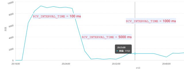 RCV_INTERVAL_TIME = 5000 ms:平均消费性能被限制到了 200 tpm 左右