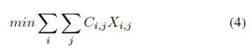 存在于成本矩阵中的剩余车辆被分配求解线性和分配问题,匈牙利算法引入的二分图的最小权重匹配[25]。如果X是布尔矩阵并且X(i; j)= 1当且仅当行i被分配给列j时,通过求解来确定最佳赋值: