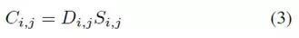 当分配成对特征距离和直方图相似度时,亲和力成本矩阵Ci*j通过以下公式计算: