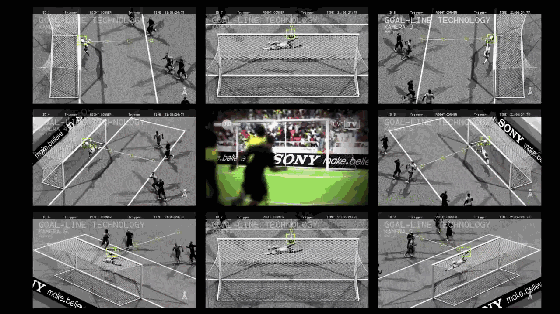 然后自动调出对应的最佳拍摄视角相机数据。结合多个相机使用多相机三角视觉测量来计算其相对于球门线的精确位置。