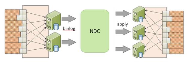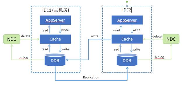 如果说使用数据订阅只是缓存更新的一种优选方案的话,那对下面的多机房缓存淘汰,NDC的数据订阅功能就是必选方案了。