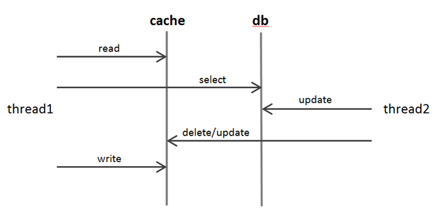 在图2场景中,线程2在将缓存更新到最新数据后,又被线程1异步滞后地更新成老数据,由于线程1和线程2没有任何状态共享,数据库中后操作的数据可能在缓存中被先操作的数据覆盖掉,导致缓存和数据库数据不一致。若这种情况出现,除非缓存主动淘汰,否则应用将始终读到脏数据。