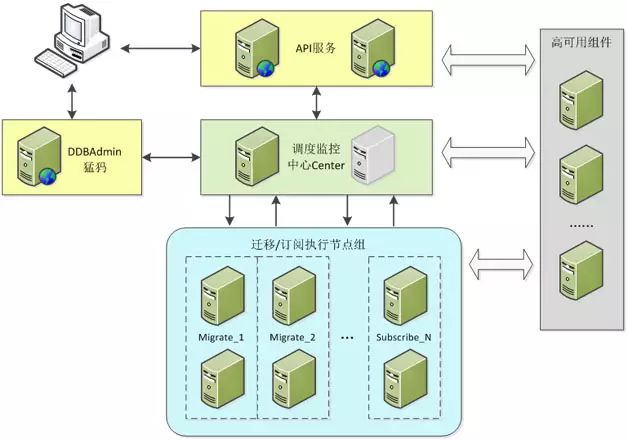 最上层无状态的API服务,是一套直接面向用户的平台化Web管理工具,API节点通过RPC向调度中心Center发起请求,除了API节点外,Center也会接受来自DDB管理工具、猛犸管理工具等其他平台的RPC调用请求。