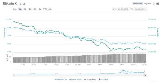 亚洲时间周二凌晨,比特币价格一度狂跌近 14 %,最低触及 4693.38 美元。这创下去年 5 月以来的 18 个月新低,同时累计已是连续第 8 天下跌,也写下比特币这一加密货币诞生 10 年以来连续最长一波跌势。
