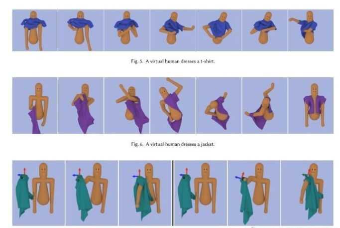 佐治亚理工学院的研究团队利用深度学习算法,将布料模拟融入学习框架,教会了AI机器系统自己穿衣服。让机器学会自己穿衣服一直是个难题,因为衣服的布料多种多样,材质性质各不相同,而且在穿衣过程中,衣服和身体会发生频繁而复杂的相互作用。研究人员设计了合适的奖励函数和惩罚函数,奖励正确的穿衣行为,惩罚可能导致衣物撕裂的行为,以便使其学习强大的穿衣控制策略。研究人员将整个穿衣任务划分为可管理控制的多个子任务,比如“抓住T恤衫的边缘”或者“拉袖子”,AI系统会单独学习每个子任务,每个子任务都需要数小时的模拟和优化,最终组合起来完成穿衣服这一目标任务。研究人员表示,使AI学会模拟复杂运动的技能,适应不断变化的环境条件,在一定程度上推动了机器人技术的发展。
