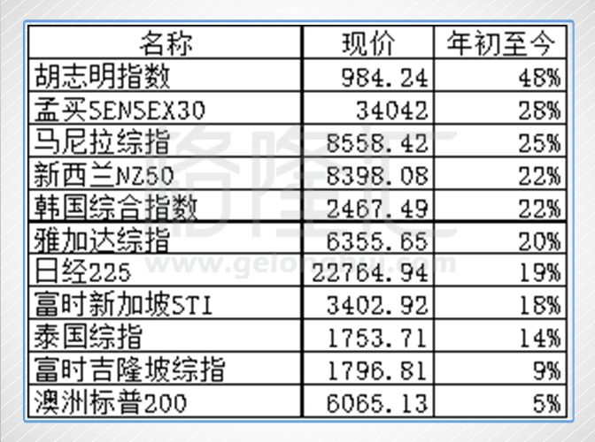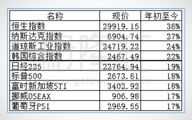 除去上面5个下跌的指数,其他国家指数均是上涨,也说明了今年可以说是个全球的牛市,本质反映了全球经济的回暖。