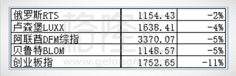 如果我们倒着去看,也是涨多跌少,垫底的依然是创业板,其他排名靠后的主要是欧洲的指数,但也都是上涨,只是涨幅可能相比全球来说并不高。