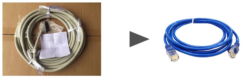 左为E1线(铜芯电缆的一种),右为网线(双绞线)