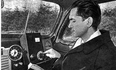 列昂尼德.库普里扬诺维奇正在测试ЛК-1型便携移动电话(来源:苏联《За рулем》杂志,1957年第12期)