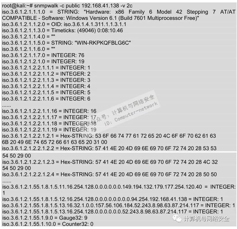 也可以使用snmpwalk命令枚举安装的软件。执行命令如下所示: