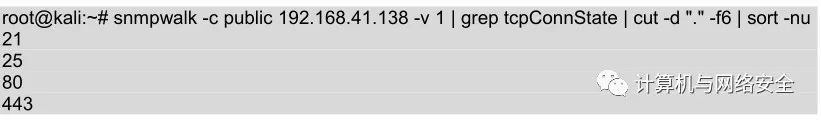 使用Snmpwalk工具也可以枚举目标主机上打开的TCP端口。执行命令如下所示: