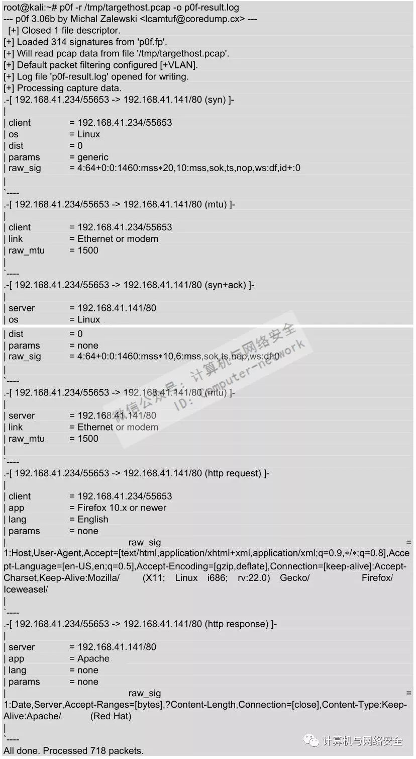 (6)获取网络信息,如TTL值、TCP段和数据元。结果如下所示:
