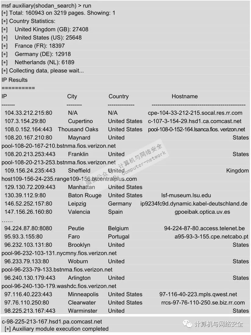 使用Metasploit实现Shodan搜索。具体操作步骤如下所示。