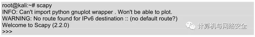 执行以上命令后,scapy程序将退出。还可以按下Ctrl+D组合键退出scapy程序。