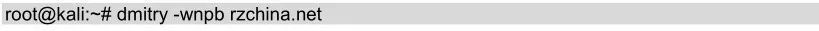 也可以使用Dmitry命令,查询关于网站的信息。下面介绍Dmitry命令的使用。
