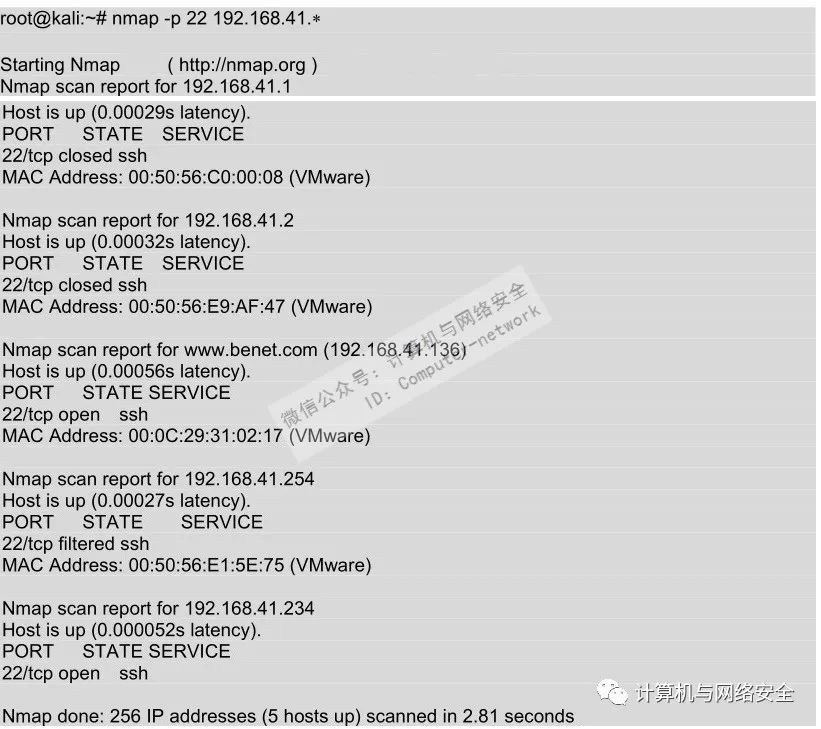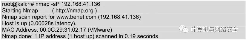 下面使用Nmap工具,测试一个网络中活跃的主机。使用方法如下所示。