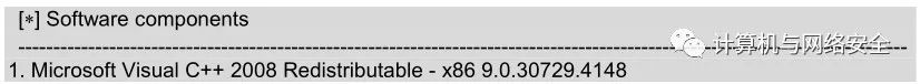 (12)获取软件组件信息,如Visual C++ 2008。显示结果如下所示: