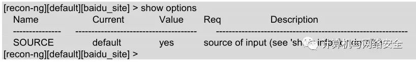 从输出的信息中,可以看到SOURCE选项参数已经设置为baidu.com。