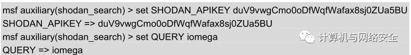 (7)配置QUERY和SHODAN_APIKEY选项参数。执行命令如下所示: