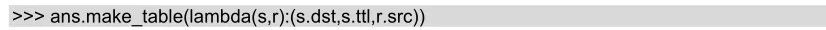 (4)使用scapy查看TCP路由跟踪信息。执行命令如下所示: