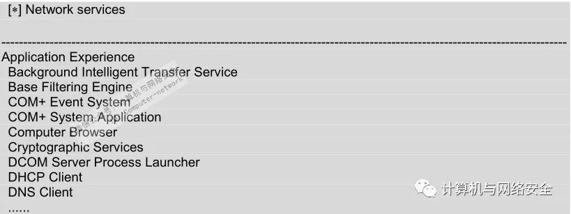 (9)获取网络服务信息,如分布式组件对象模型服务、DHCP客户端和DNS客户端等。结果如下所示:
