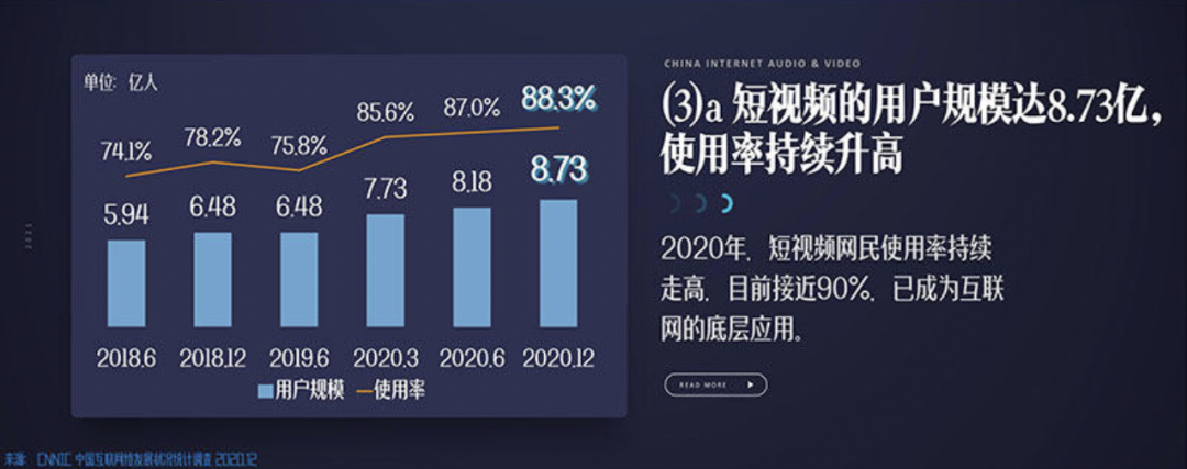 2018年短视频月总使用时长超越在线视频,2021年再超过即时通讯,内容消费形态变革的浪潮汹涌——越来越短、越来越碎。