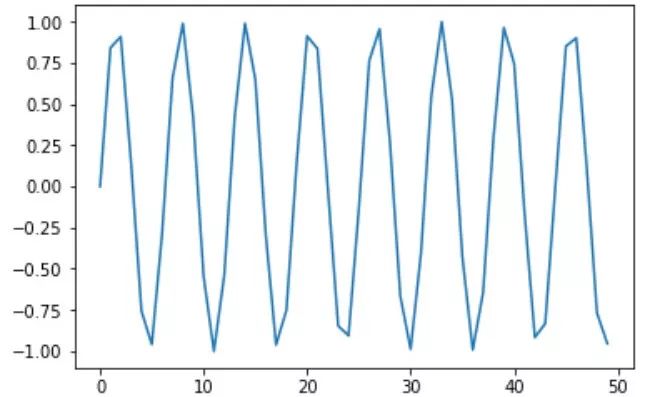 plt.plot(sin_wave[:50])