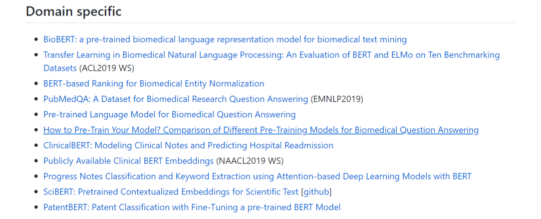 https://github.com/tomohideshibata/BERT-related-papers#domain-specific