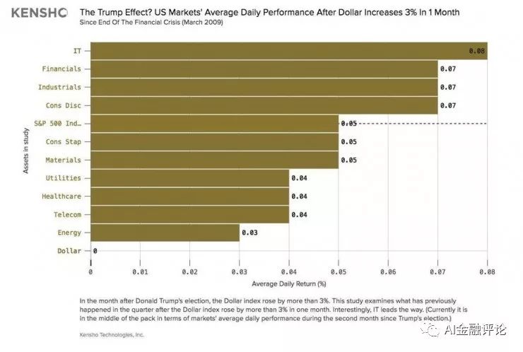 当民粹主义跨越大西洋到美国时,Kensho再次提出了令人信服的见解。2017年初,Kensho预测,受美元反弹影响的科技股公司很快就会跑赢大盘,然后这就发生了。事实证明,科技股是2017年的大赢家,而美元是一个大输家。