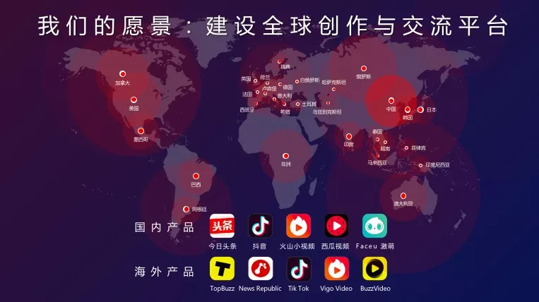 基于我们前面提到的种种尝试与努力,字节跳动的愿景也正在逐步实现——建设全球创作与交流平台。公司成立至今六年以来,我们的产品和服务已经覆盖 150 多个国家、75 个语种,在 40 多个国家和地区位居应用商店总榜前列。而这背后,正是科技和创新在推动我们全球化的发展。技术出海,是字节跳动全球化发展的核心战略,人工智能技术是字节跳动全球化取得当前进展的关键。作为人工智能时代的中国创业者,未来字节跳动将继续孜孜以求,帮助全世界的用户更好地创作、交流、互动,也为中国人工智能的发展贡献一份力量!